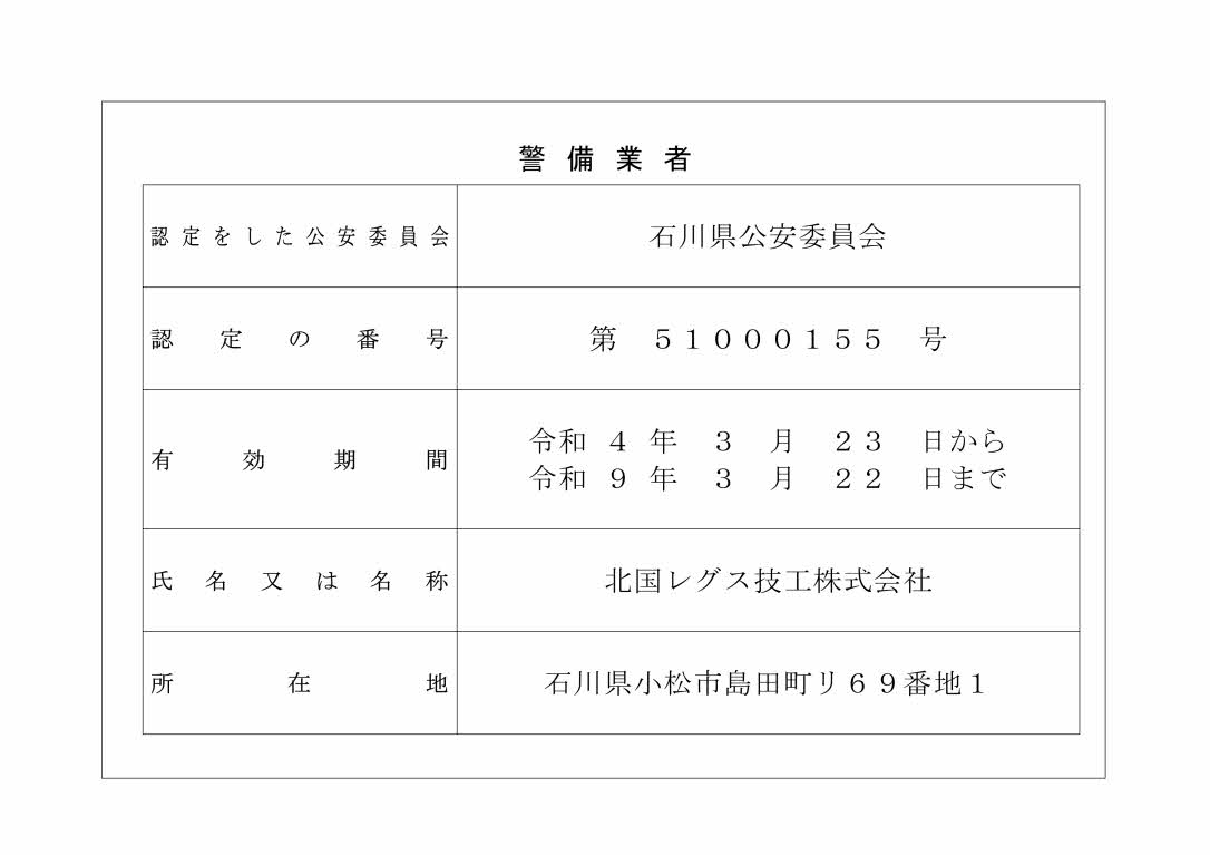 警備業法第6条(標識の掲示義務等)に基づき標識を掲示いたします